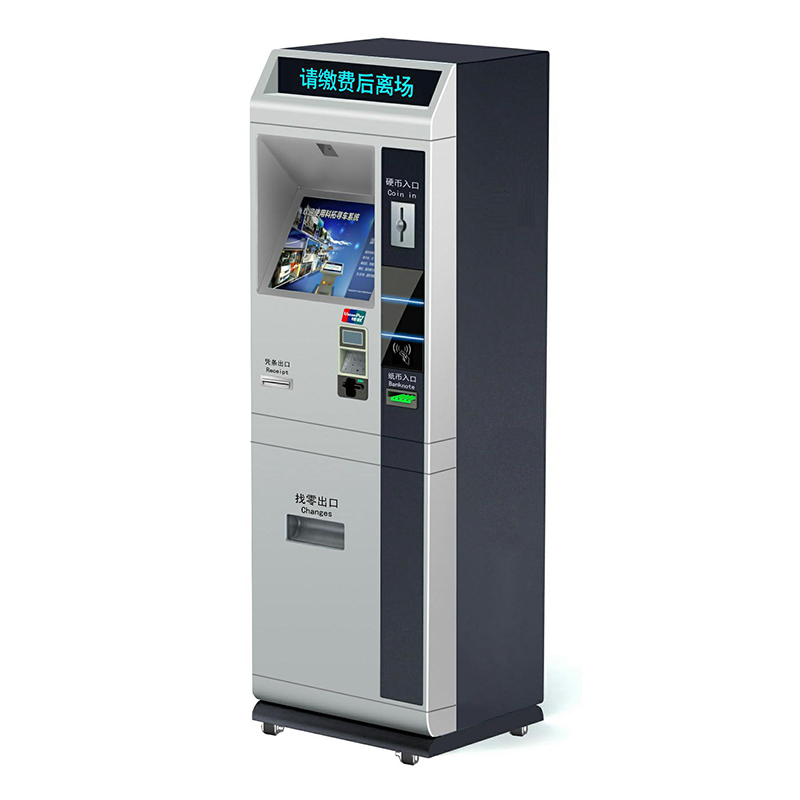 输入车牌或扫纸票进行计费、支持纸币、硬币、支付宝、微信支付方式;