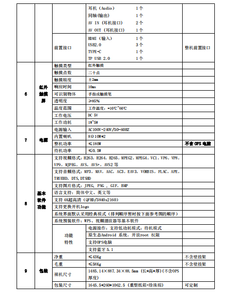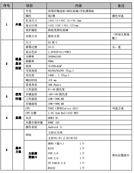 2. 智能交互平板均采用超高清真 4K 画质,显示更加清晰,画面刷新率为 60~120Hz。