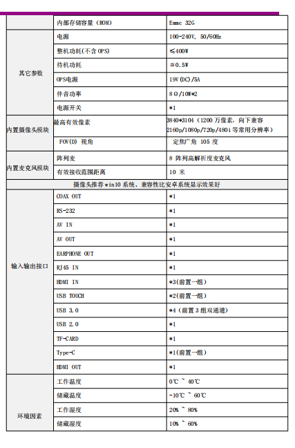 内置 windows 4K 1200 万像素、8 阵列麦克风,拾音距离 10 米,双系统兼容识别,视频会议更便捷;