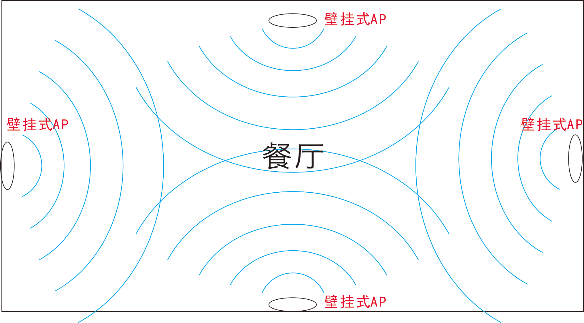 酒店餐厅相对空旷,阻隔物较少,可根据餐厅规模及吸顶式AP覆盖范围酌情部署,布点点位均匀分布,如下图所示